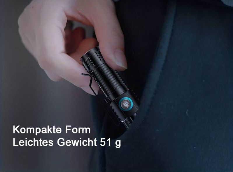 Leistungsstarke Backup Lampe, Wasserdicht und Staubdicht, USB-C Aufladekabel, 3 Lichtstärken, 1000 lm, 500 lm, 300 lm, ausgestattet mit einem Clip und starken Magnet, verfügt über eine Batteriekapazitätsanzeige.