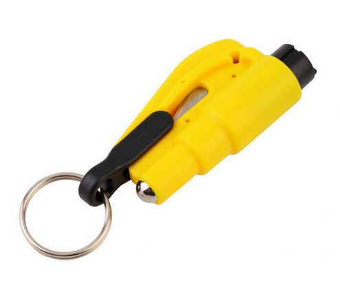 - besitzt auch ein Schneidewerkzeug, welches durch Entfernen des Clips, der am Schlüsselanhänger befestigt ist, gezogen wird. Damit können auch Gurte einfach zerschnitten werden.