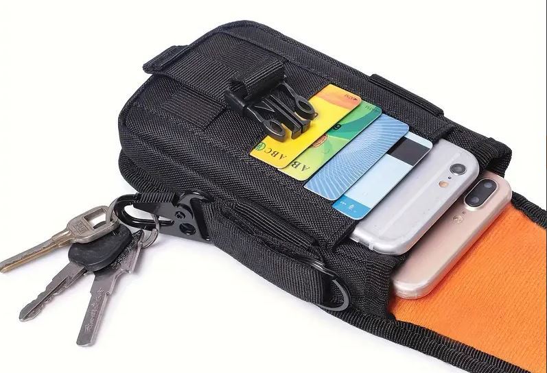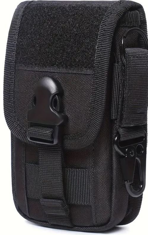 Langlebige, wasserabweisende Handytasche aus 1000D-Nylon für Mobiltelefone bis zu 6,5 Zoll. Die Vorderseite des Hauptfachs verfügt über vier Kartenfächer für Kreditkarten oder Ausweise und ein grösseres Fach. Hier befindet sich ein verstellbarer Schnallenriemen, mit dem Sie Ihr Mobiltelefon und andere Gegenstände befestigen und sichern können. Auf der Rückseite gibt es zwei Fixierschlaufen, welche individuell an Ihren Gurt angepasst werden können. Grösse: 18 cm x 9 cm x 3 cm, Farbe: schwarz